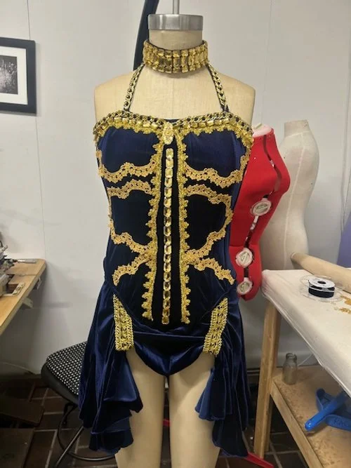 Our task involved embellishing the corsets provided by Brent Street, altering skirts, and custom-making and embellishing jackets to fit the performance vision. Additionally, we took on the responsibility of sourcing accessories and fabrics, and acted as the key liaison between Brent Street and the America's Got Talent team. Coordinating a skilled team, we worked under intense pressure as approvals kept changing, often complicated by time zone differences.